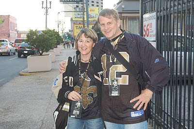 And then my BIL and SIL (in photo) went to the Saints game–the entire CITY was dressed in black and gold and revved up for the game, which the Saints lost. In the spirit of oNew Orleans, however, no one seemed upset. Hope springs eternal in this place. And did you know that polls show New Orleans to be home to the happiest people in the country? (And no, I don’t think they were drunk when they took the poll).