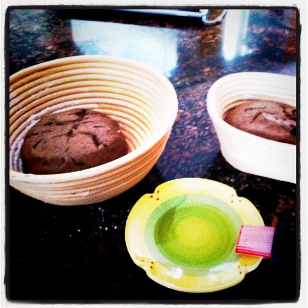 | Place dough in basket, coat with oil. |