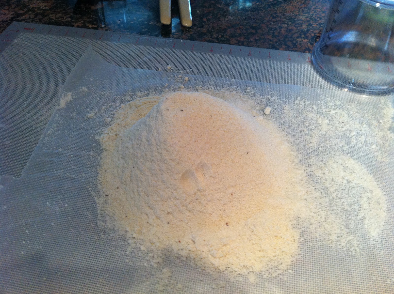 First step: mix sugar and almond flour in a food processor; sift onto waxed paper. You want a SMOOTH shell.