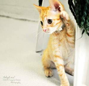 Don’t get me wrong–they were very sweet. That little darling, Scootch (who I think has been adopted already!) purred the entire time he was with me. The orange tabby wanted only to curl up in my lap–which, while heartwarming, does not make for a good picture.