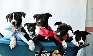 And I met some really cute and sweet dogs today. But the best photo is one it took four people to compile–or rather, to keep five puppies in one wheel barrow. Here are some of my favorite shots: